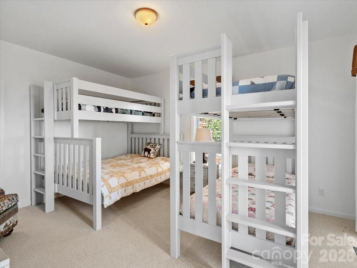 This beautifully updated custom home sits on over half an acre and offers breathtaking long-range mountain views in the peaceful and private Springhouse Drive neighborhood of MOUNTAIN AIR. Blending rustic charm with modern luxury, the wood and stone exterior is complemented by stone walls and a tranquil waterfall feature at the entry. Designed for ideal main-level living, the open floor plan includes a fully renovated kitchen with a handy pantry at your fingertips, plus a second pantry closet, a stylish powder room, a spacious dining area, and a great room with a soaring wood ceiling and a striking stone fireplace. The main level also features the primary suite with a luxury en suite bath and private laundry. The upper level offers a versatile guest suite or office with its own full bath and private deck—perfect for visitors or remote work. The expansive lower level is ideal for family or guests, with a large den, two bedrooms, two full baths, a kitchenette with additional laundry, multiple porches, and a private entrance. Offered furnished with a few seller exceptions. A newer electric golf cart is negotiable. Located close to the heart of the community and just a short distance from Club amenities—including dining, fitness center, tennis courts, golf, and year-round events and activities, available with separate Club membership.